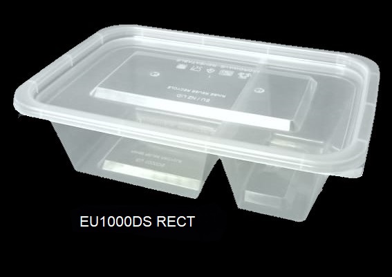 1000ML 2- COMPARTMENT MEDIUM WALL “REUSABLE” RECTANGULAR CONTAINER EU / NZ LID |